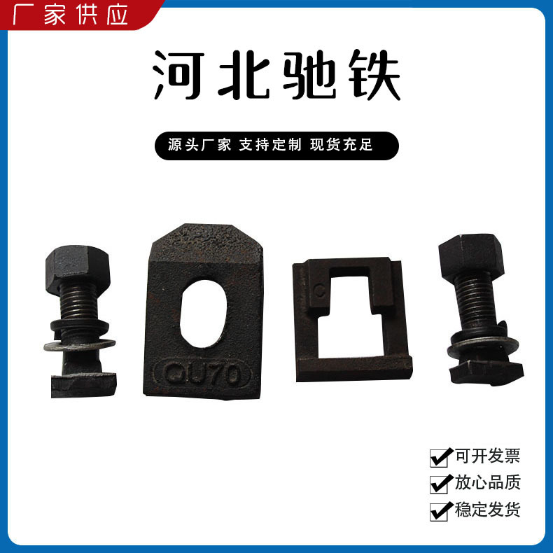 主要產(chǎn)品:鐵路配件、行車配件、工礦配件、魚尾板、道釘、壓軌器、軌道壓板、軌距拉桿、護(hù)軌扣板、T型螺栓、魚尾螺栓、彈條、軌距擋板